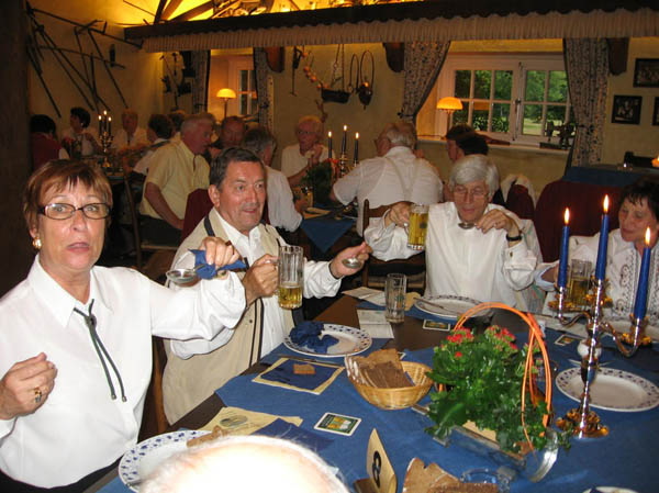 Dieses Foto hat die Bildnummer 07CHR-025 Das kühle Getränk aus dem Löffel gehört dazu, nachdem man einen entsprechenden Spruch aufsagen konnte. Der Aal wird dadurch besonders gut vertragen! |