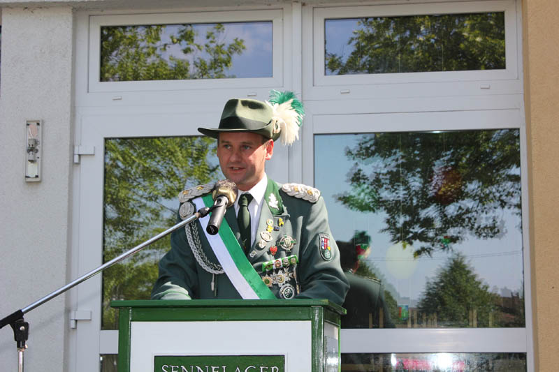 Schützenoberst Dirk Koch spricht zu seinen "Untertanen", zum Volke.