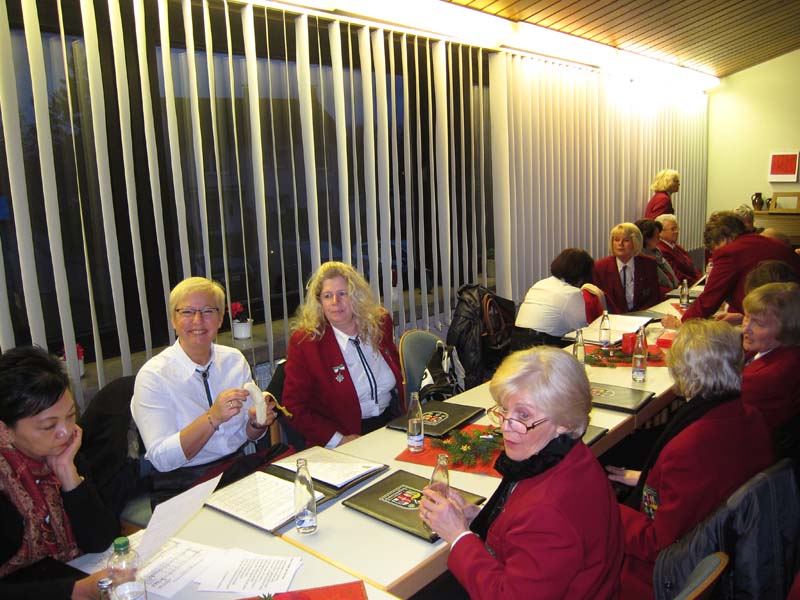 ...Nguyet studiert, Eva trinkt, Karin und Maria teilen sich eine Banane, Adriana und Lisa erzählen...
