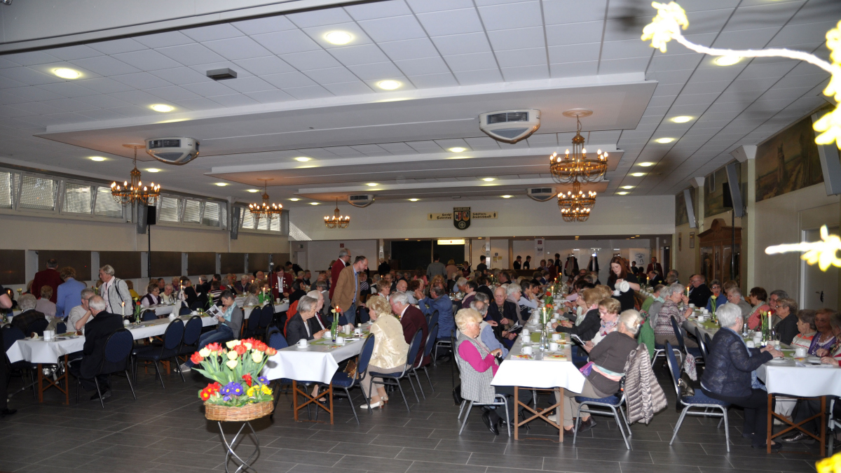 Die festlich geschmückte Schützenhalle ist gut gefüllt |