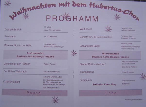 Bei den Weihnachts-konzerten 2005 war dies unser Programm