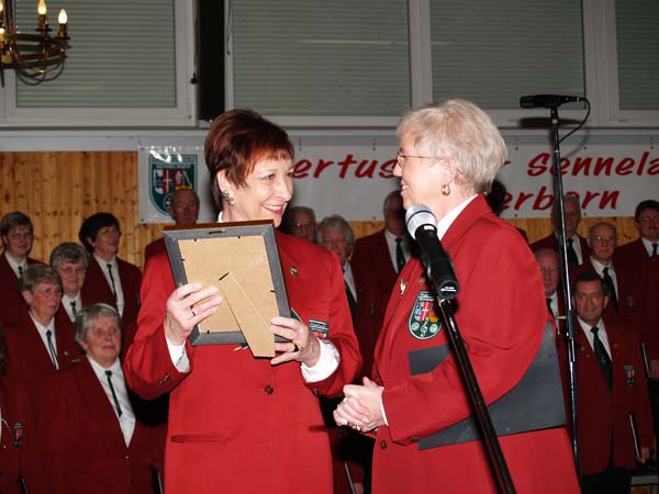 Dieses Foto hat die Bildnummer 06FRK-023 Unsere Sopranistin Ellen May wurde durch Hildegard Geppert für ihre 50jährige Bühnentätigkeit geehrt. |