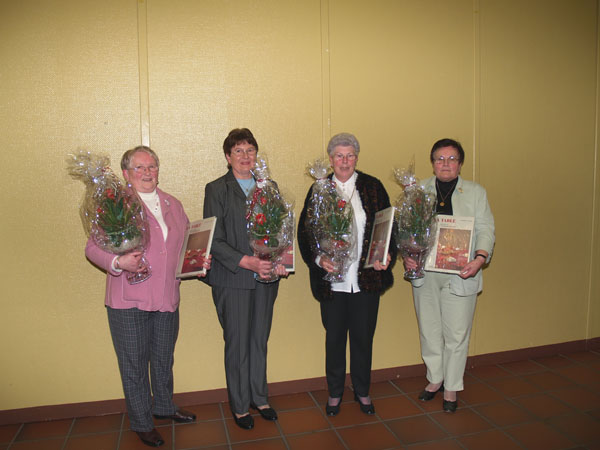Dieses Foto hat die Bildnummer 07JHV-014 Für immer wiederkehrenden Einsatz über viele Jahre wurde der nun ausscheidende Festausschuss mit Präsenten geehrt - Sigrid Kleineberg, Resi Peitz, Erna Witt und Käthe Mohr. |