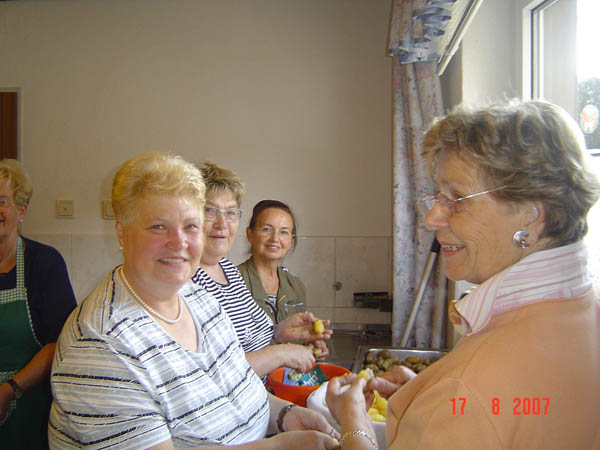 Die Damen beschäftigen sich derweil mit den Vorbereitungen für Kartoffelpuffer usw.