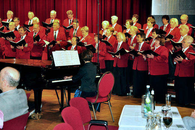 Und alle Sängerinnen und Sänger achten auf den Dirigenten.