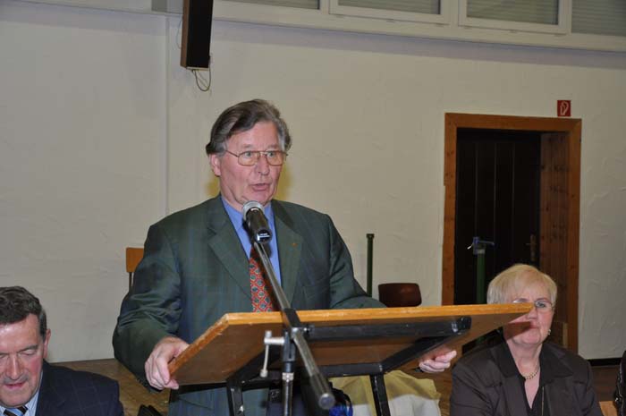 Dieses Foto hat die Bildnummer 09JHV-016 Auch "Schirmherr" Gerd Fischer freut sich über die Einladung zur JHV. Er begrüßt alle Anwesenden und bedankt sich insbesondere bei Alfons Puscher für 20 Jahre Leitung des Chores und bei Ellen May für ihre langjährige Solistinnentätigkeit im Chor. |