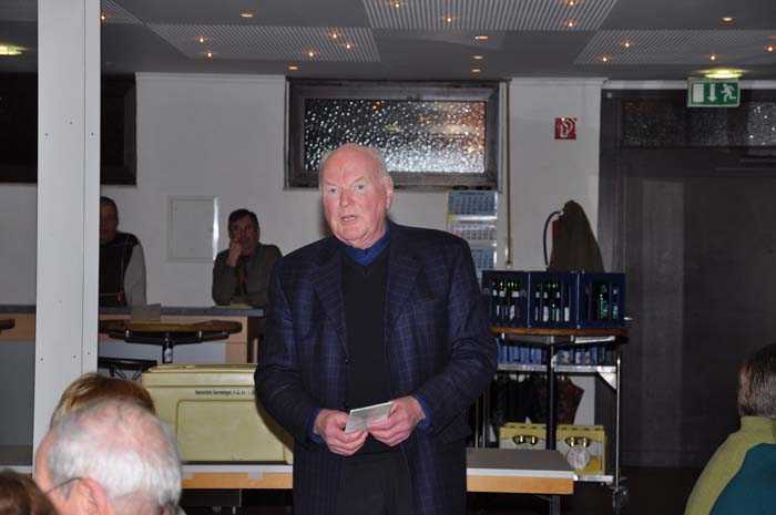 Dieses Foto hat die Bildnummer 09JHV-017 Richard Kirchhoff erläutert das diesjährige Bundesschützenfest in Hövelhof. Der Hubertus-Chor als einziger und größter gemischter Chor im Bund der historischen deutschen Schützenbrüder wird am Sonntag in der Messe seinen großen Auftritt haben. |