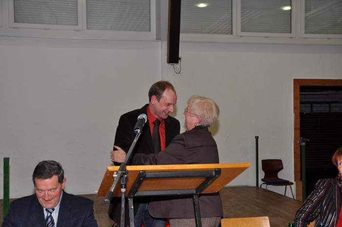 Dieses Foto hat die Bildnummer 09JHV-019 Danke für die Wahlleitung an Dirk Koch und herzlichen Glückwunsch zur Wiederwahl als erste Vorsitzende an Hildegard Geppert. |