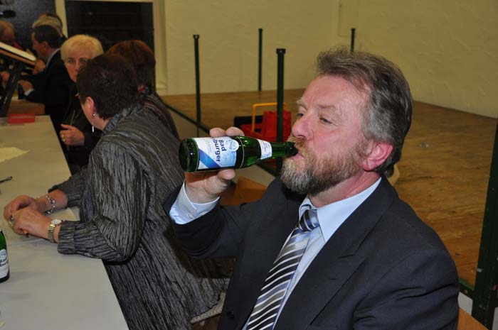 Dieses Foto hat die Bildnummer 09JHV-032 Na denn Prost Wasser, lieber Horst Schröder, zweiter Kassierer! Die Kasse muss schließlich auch heute "stimmen". |