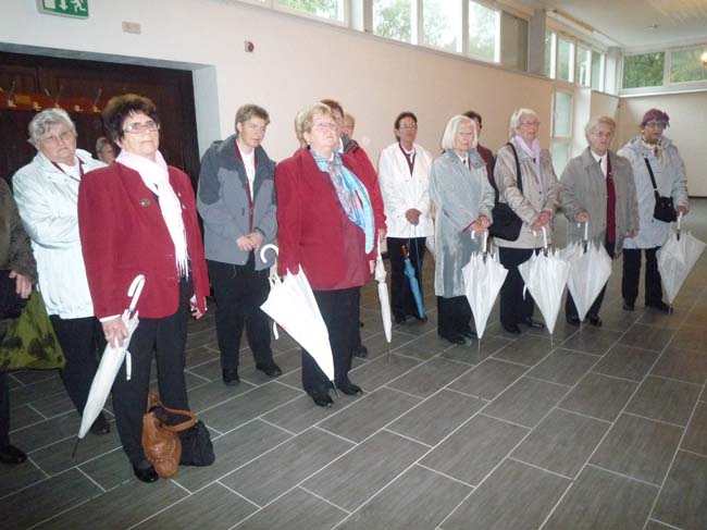Dieses Foto hat die Bildnummer 10CHR-002 Leider musste der Schirm zum Einsatz kommen - aber nur für die Hinreise. Und überwiegend saßen wir während des Regens im Bus ... - Abschied in der Schützenhalle Sennelager. |