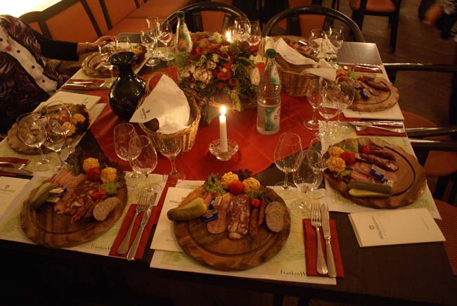 Dieses Foto hat die Bildnummer 10CHR-053 Zur Weinprobe gehörte zunächst auch eine gute Grundlage, eine "Hausmacher-Platte", sehr delikat. |