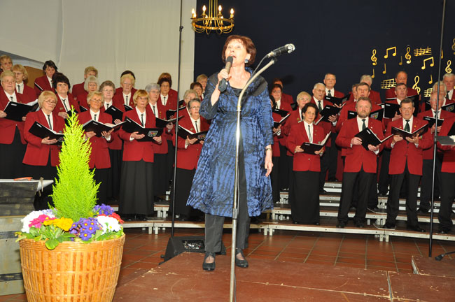 Solistin Ilona Puscher mit Chor. Sie hat eine wunderschöne Alt-Stimme.