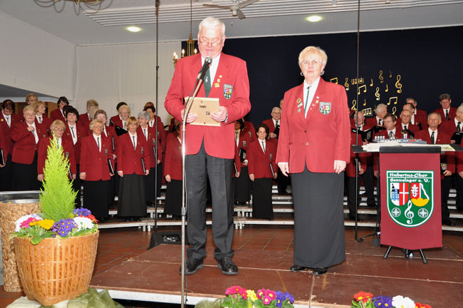 Hubert Hinkel trägt die Laudatio vor und Hildegard ist total überrascht!