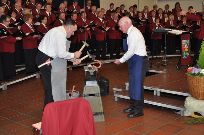 Dieses Foto hat die Bildnummer 10FKZ-026 Hier sind mal wieder die Handwerker am Werk. Heinz und Josef arbeiten am Amboss bei der entsprechenden Polka. |