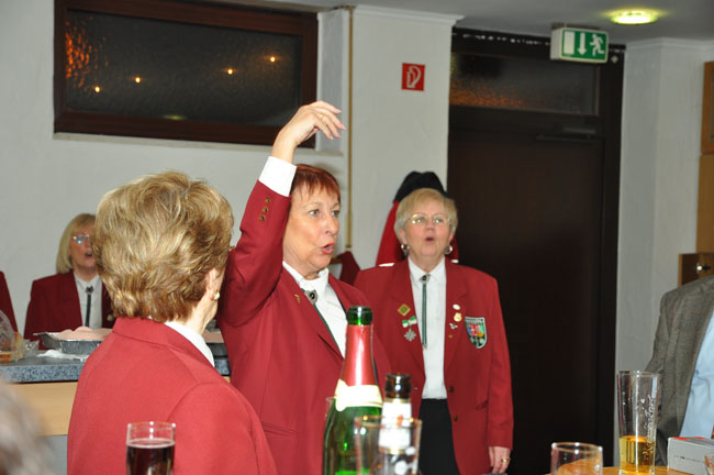 Dieses Foto hat die Bildnummer 10FKZ-032 Ein wenig Nachfeier an der Theke muss sein. Hier gibt Ellen den Einsatz für ein Gratulationslied. |