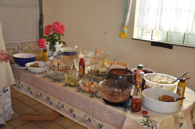Dieses Foto hat die Bildnummer 10SJR-030 Viele Salate sind angerichtet, wieder ein Ergebnis zahlreicher fleißiger Hände aus dem Chor. |