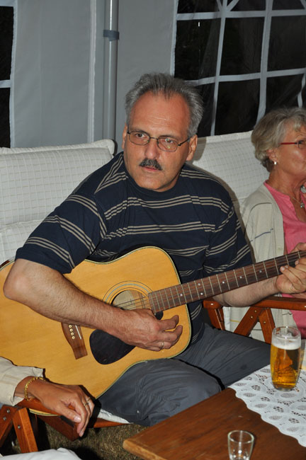 Andreas hat schon mal seine Gitarre geholt. Er ist zum Spielen und Singen bereit.