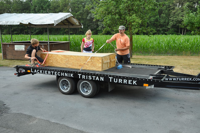 Abholen der Zelte durch Tristan Turrek mit Kindern.