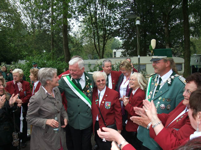 Dieses Foto hat die Bildnummer 10SSF-043 Hubert mit Ehefrau Renate und Königin Hildegard. Und der gesamte Schützenverein ist begeistert. Erstmalig der König mit seinem Gefolge aus der Chorgemeinschaft, die eine Abteilung der Sennelager Schützenbruderschaft ist. |