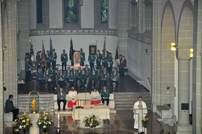 Ein Blick in den Altarraum mit der Musikkapelle.
