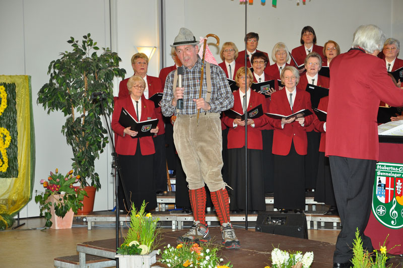 Wolfgang Fischer (Bass) ist Solist in "Ich bin nur ein armer Wandergesell" in zünftiger Wanderkleidung.