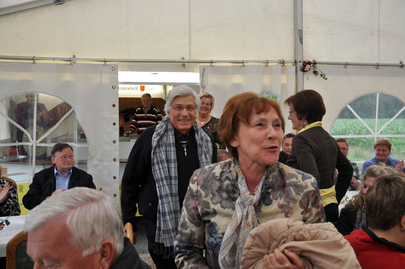 Alfons hatte mitgeteilt: "Bei kühlem Wetter bitte mit Schal - unser Konzert steht vor der Tür. Und niemand soll sich erkälten!" Und er geht mit Ilona selbst mit bestem Beispiel voran.