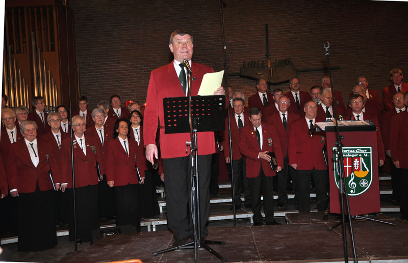 Günter Kube ist Moderator und erzählt zwischen den Gesangsblöcken etwas Interessantes zu den einzelnen Musikstücken.