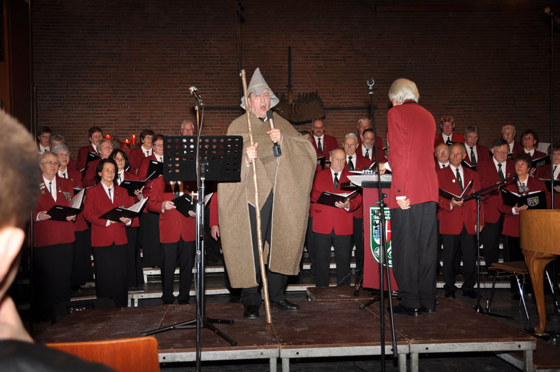 Wolfgang Fischer, Bass, ist Solist in einem Musikstück mit Chor, wozu er sich als "Hirte" verkleidet.