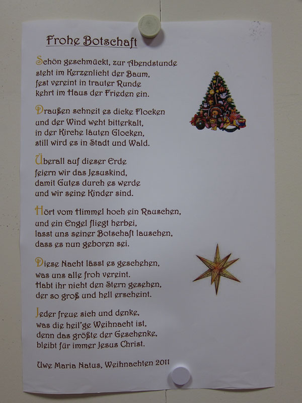 Die Frohe Botschaft wurde verfasst von Maria und Uwe Natus aus Paderborn.