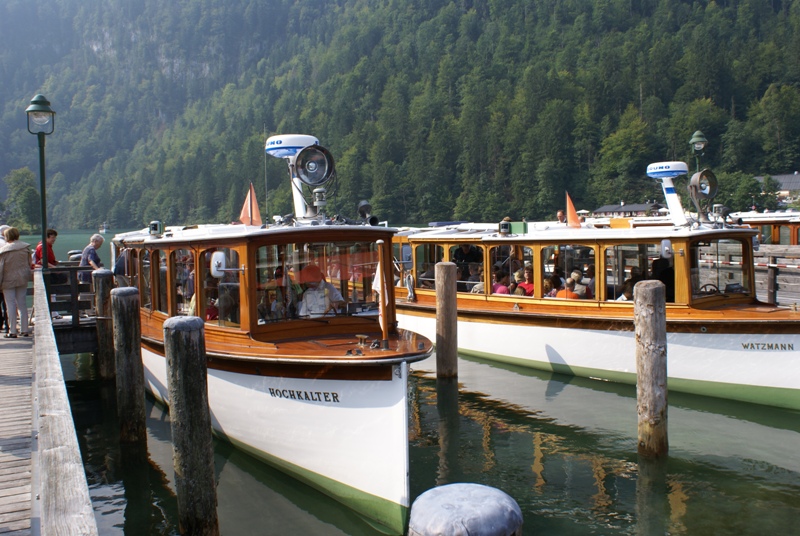 Mit diesen kleinen Booten werden zahlreiche Urlaubsgäste über den Königsee zu den Sehenswürdigkeiten gefahren.