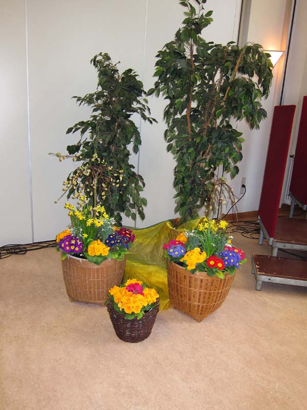 Dieses Foto hat die Bildnummer 12FKZ-001 Jedes Konzert beginnt mit dem Bühnenaufbau und der jahreszeitlichen Dekoration. Für den Bühnenaufbau sind immer wieder zahlreiche Sänger zur Verfügung, es gebührt ihnen unser aller herzlicher Dank. Die Dekoration übernehmen Käthe und Hans Mohr, auch hier unseren herzlichen Dank! |