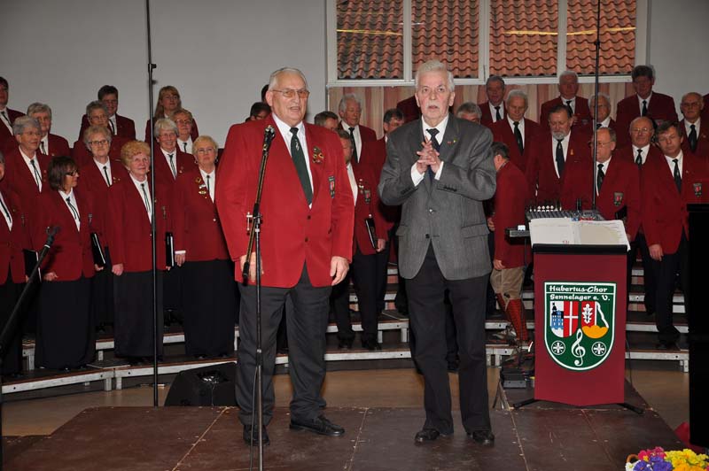 Hubert Burchert singt seit 50 Jahren im Bass! Dazu erhält er eine Ehrung durch den gerade ernannten Ehrenvorsitzenden des Sängerkreises Paderborn-Büren, Herrn August Vöcking.