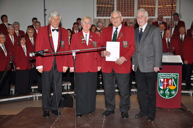 Gratulation an Hubert Burchert durch 1. Vorsitzende Hildegard Geppert und Chorleiter Alfons Puscher. Natürlich gratuliert ihm auch die gesamte Chorgemeinschaft!