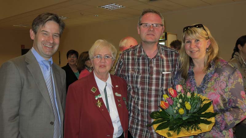Hildegard Geppert mit dem Herrn Bürgermeister Behrens, dem Oberst aus Hövelhof, Herrn Bonke sowie der Ehefrau des Bürgermeisters, Frau Behrens.