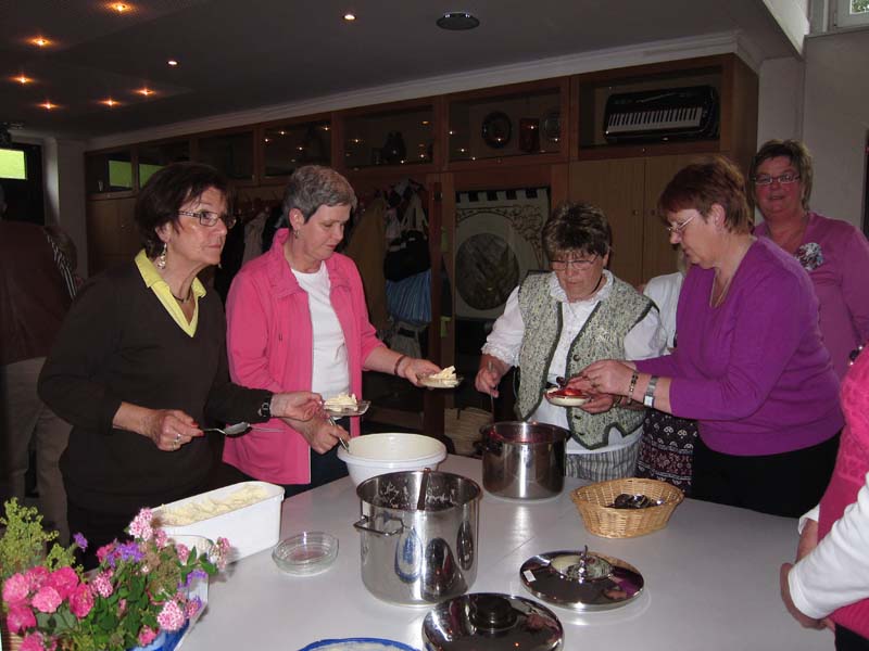 Und hier sind wir beim Nachtisch: Eis, Rote Grütze und Vanille-Sahne-Sauce. Solch ein Nachtisch rundet die ganze Sache super ab!