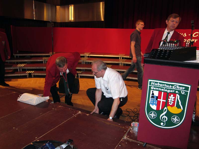 Günter, Andreas, Jürgen und andere beim Aufbau der Technik.