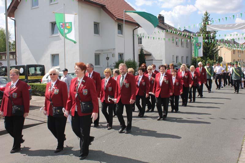Der Hubertus-Chor ist bei jedem Schützenfest recht zahlreich vertreten. Und stellt in den Farben einen schönen Gegensatz dar.