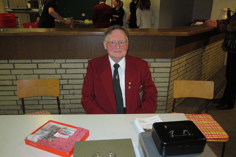 Hans wartet darauf, Kuchenkarten zu verkaufen.