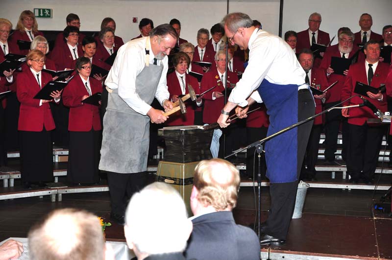 Immer wieder schön und interessant: die Unterstützung bei der Amboß-Polka durch Josef und Andreas. |