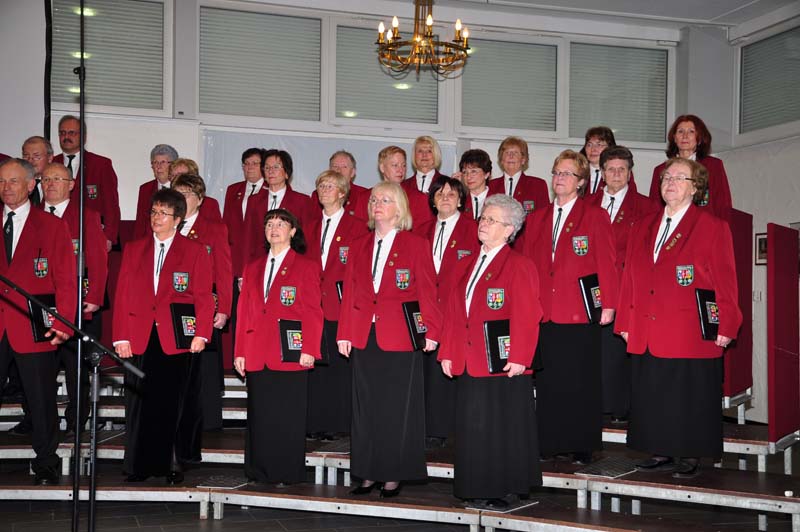 Der Chor ist nach einer Pause wieder aufgetreten und wartet auf den Einsatz.