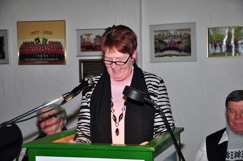 1. Kassiererin Brigitte Turrek ist für den Kassenbericht zuständig. Sie erläutert einige Zahlen und scheint sich darüber zu freuen.