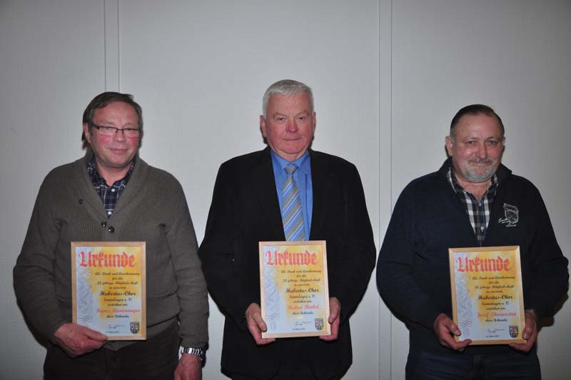 35 Jahre Chormitglied: Franz Bewermeyer, Hubert Hinkel, Josef Thorwesten. Die Urkunden wurden eigens angefertigt und gerahmt.