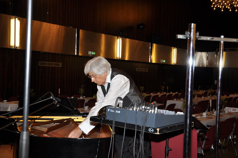Und schon geht es mit den "technischen Vorbereitungen" für das Konzert im Kongresshaus Bad Lippspringe los. Alfons Puscher hat reichlich "Vorarbeit".