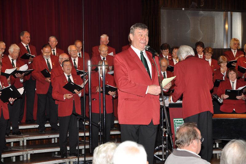 Nun eröffnet Günter Kube als Moderator seinen Teil des Nachmittags. Er leitet von Block zu Block über mit Erklärungen und kleinen Geschichten, die das Publikum erfreuen.