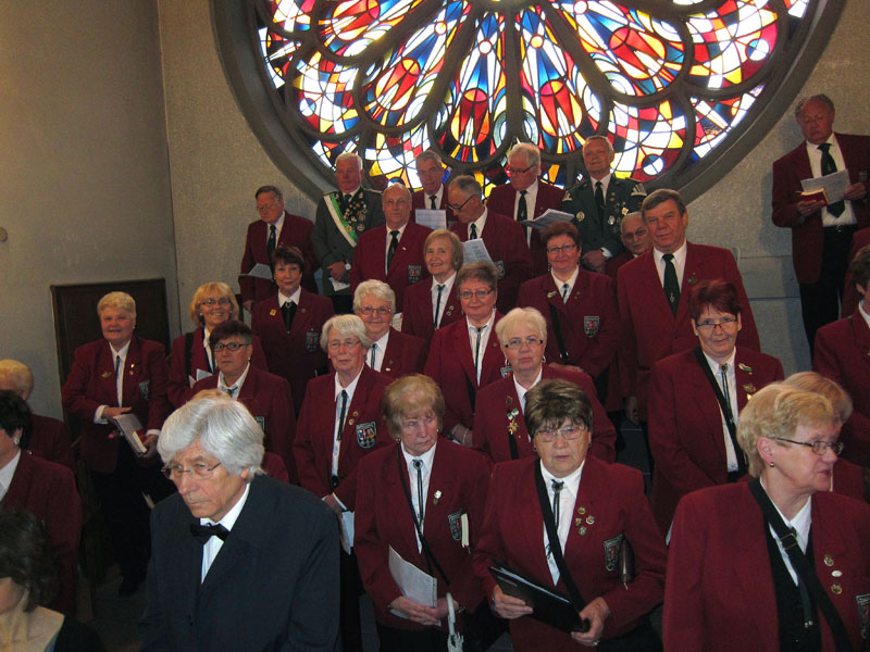 Der Samstag beginnt immer mit der "Schützenmesse". Und der Hubertus-Chor versammelt sich auf der Orgelbühne, um seinen Beitrag zur Messe zu leisten, z. B. "Sei gegrüßet, St. Hubertus ..."