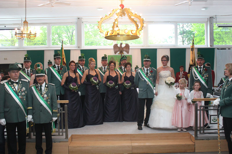 König und Königin mit ihren Hofdamen und Hofherren sowie dem Vorstand.