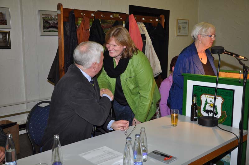 Frau Kirsten Heggemann gratuliert als Erste den Wiedergewählten. |