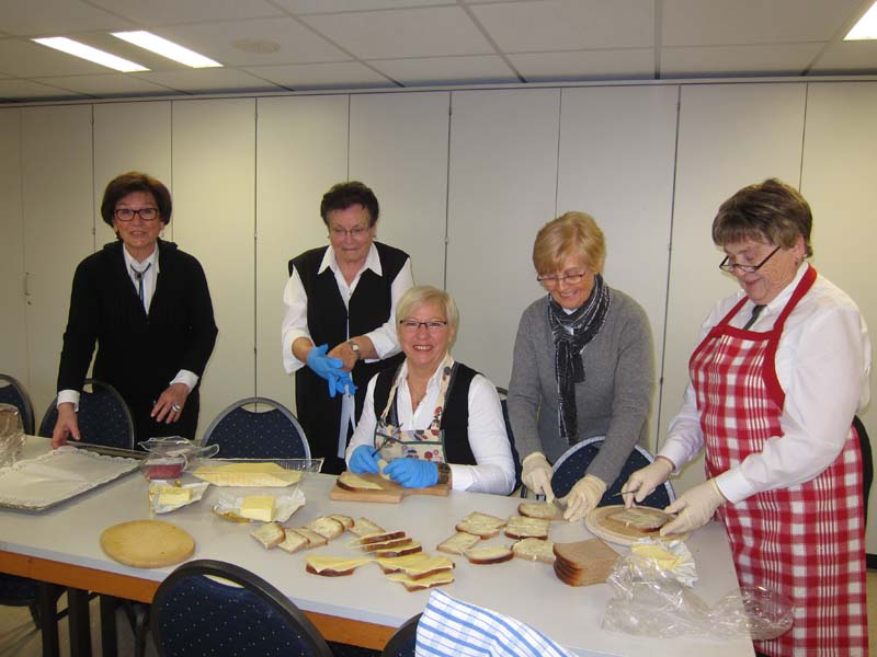 Auch an das leibliche Wohl der Gäste denken die Damen des Chores. Ganz vorschriftsmäßig, mit Handschuhen!