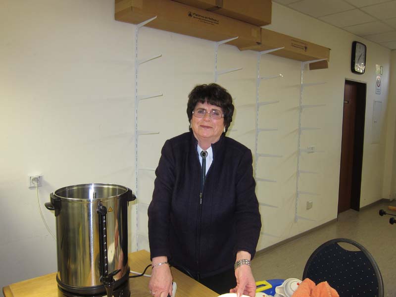 Elisabeth kocht schon einmal Kaffee. Die ersten Sänger werden bald eintreffen. |