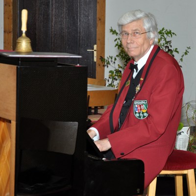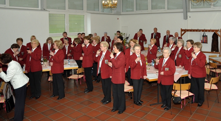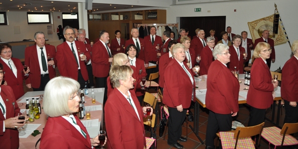 Der gesamte Chor ist in "Chorkleidung" erschienen, Alfons Puscher wartet auf seinen Einsatz zum Gratulationslied.